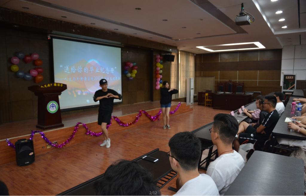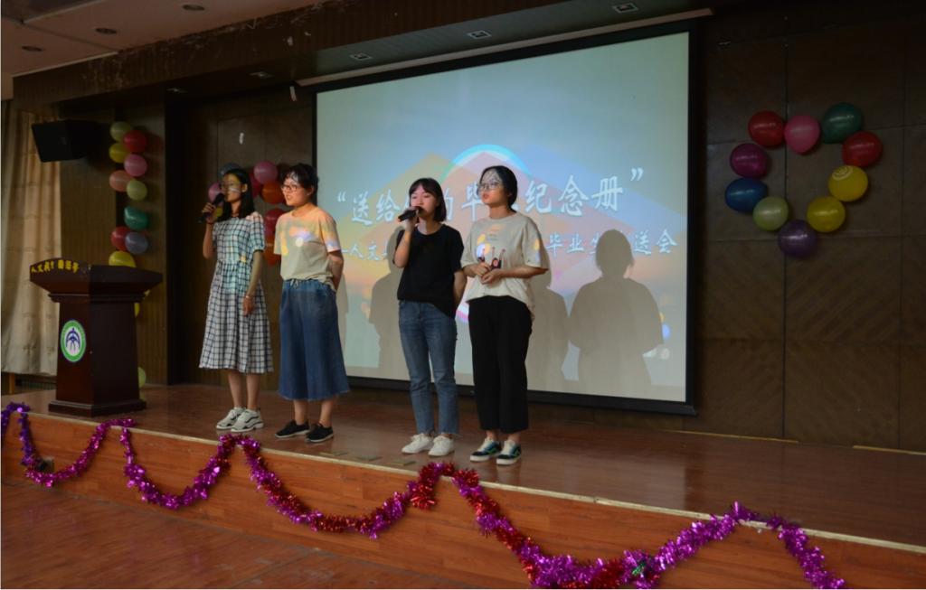 首先,学生会主席李丹宣布了送别会开始,通过视频为我们展现了学弟学妹对学长学姐们的祝福与不舍。大家还通过信纸吐露真情,用舞蹈表达感谢,用歌曲锁住不舍,用相册纪念过去。学长们纷纷感动,在演讲中既发表了对各级学子们展望未来的期望,又表达了对学院不断繁荣发展的美好祝愿。