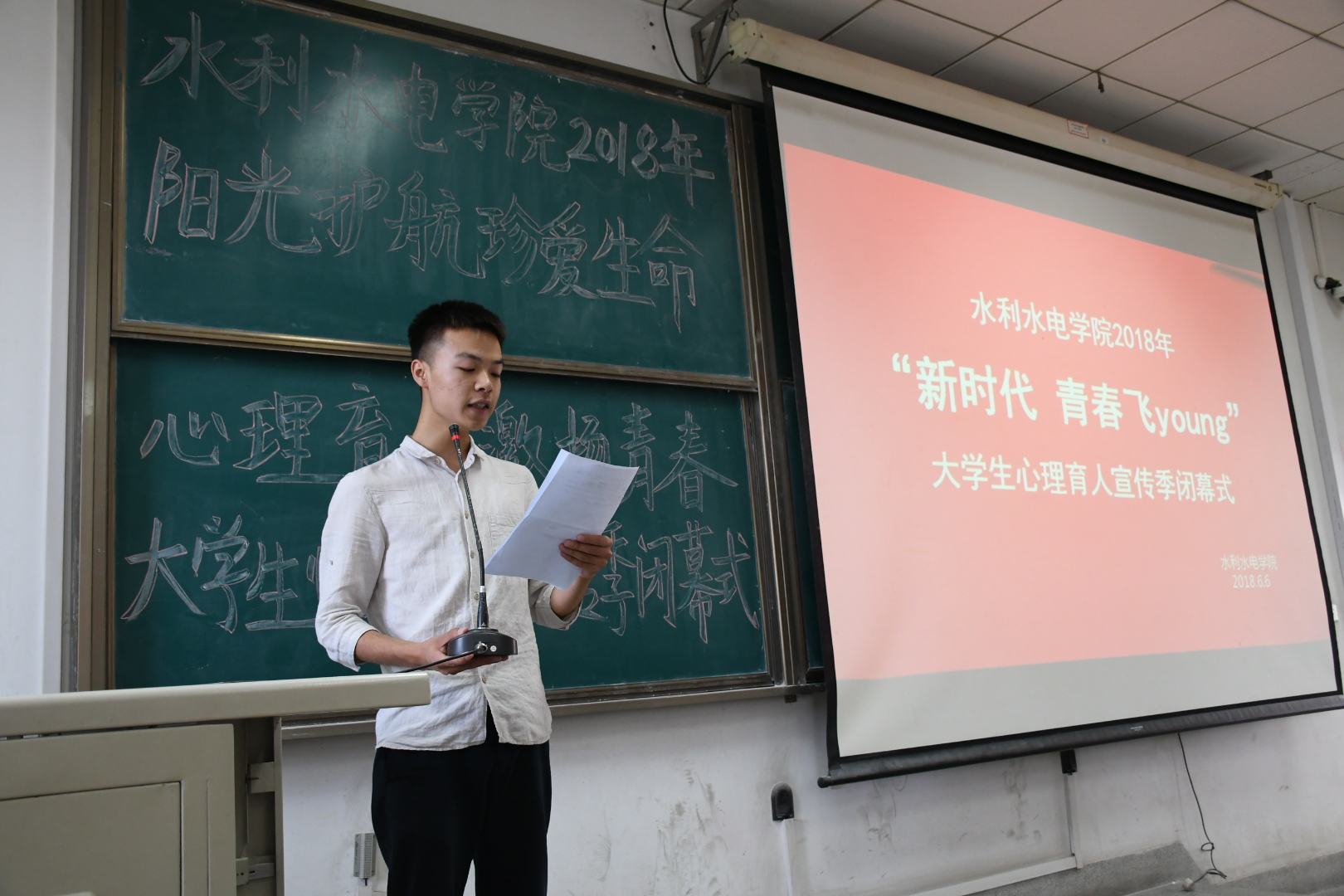 2018年6月6日下午14:30,西安理工大学水利水电学院“新时代 青春飞young”大学生心理育人宣传闭幕式于教10-301成功举办。本次闭幕式活动由水利水电学院2017级辅导员王倩老师主持。到场嘉宾有:水利水电学院党委副书记、副院长李红英老师,心理健康教育中心冯娟老师,水利水电学院团委杨帆老师,水利水电学院2016级辅导员何伟同老师,水利水电学院2017级辅导员薛渊老师。