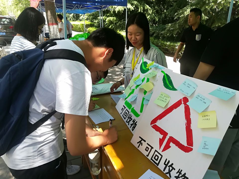 世界环境日为每年的6月5日,它反映了世界各国人民对环境问题的认识和态度,表达了人类对美好环境的向往和追求。为响应绿色环保的号召,鼓励同学们在生活中践行环保理念,西安理工大学水利水电学院乐水志愿者协会在曲江校区主干道举办了“绿色环保、你我同行”主题宣传活动,鼓励大家积极参与,为绿色环保献言献策。