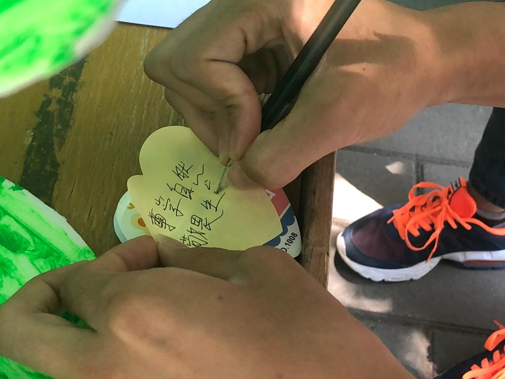 6月5日中午十二点,随着下课铃声响起,主干道迎来了前来参与活动的同学们。一项项有趣的环保小游戏过后,同学们纷纷写下了对于绿色环保的理解与建议。一张张承载着同学们建议的便利贴渐渐挂满了心意树的枝头。有节水省电的小贴士,也有垃圾分类的常识。同学们用自己的智慧为环保事业结出累累硕果,为绿色校园的建设贡献力量。