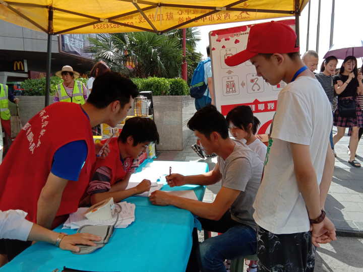 因为志愿者们在此之前已有献血方面的知识培训,并参与过多次血站执勤活动,所以在与医务人员经过简单的工作沟通,并相互分工后,就开始了充实而又忙碌的工作。由于这次志愿服务在较为开放的血车,再加上当天气温很高,使得志愿工作较以往更辛苦一些。但志愿者们没有丝毫的懈怠和抱怨,在感叹医护工作者坚守工作,奉献不易之外,以更加热情认真的为每一个前来献血的爱心市民服务,获得了在场医务人员和献血者的一致好评。